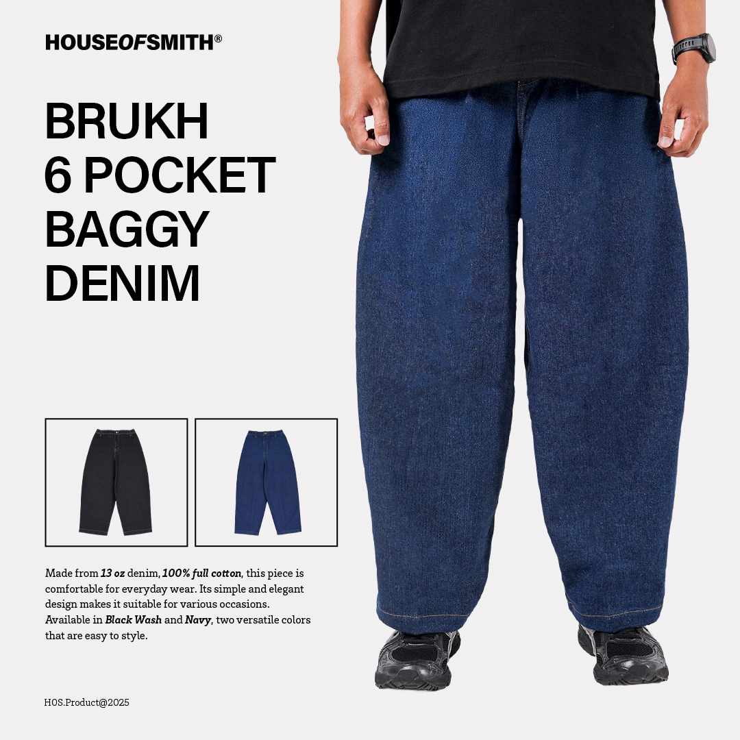 House of Smith Celana Denim Pria - Brukh 6 Pocket Baggy Denim Wash - Long Baggy Denim
