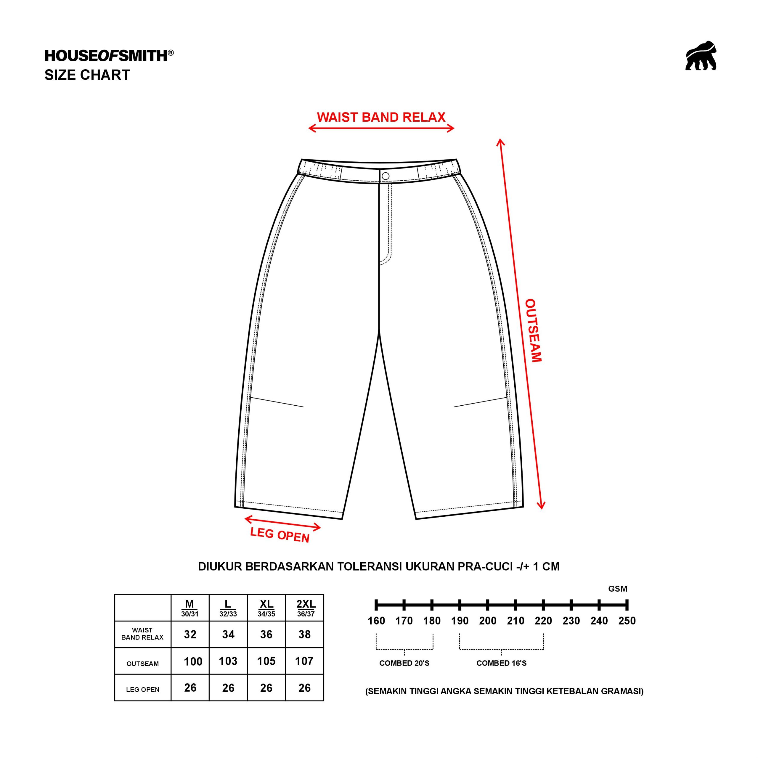 • 2XL = 36/37 : Waist Band Relax : 38 | Outseam: 107 | Leg Open: 26