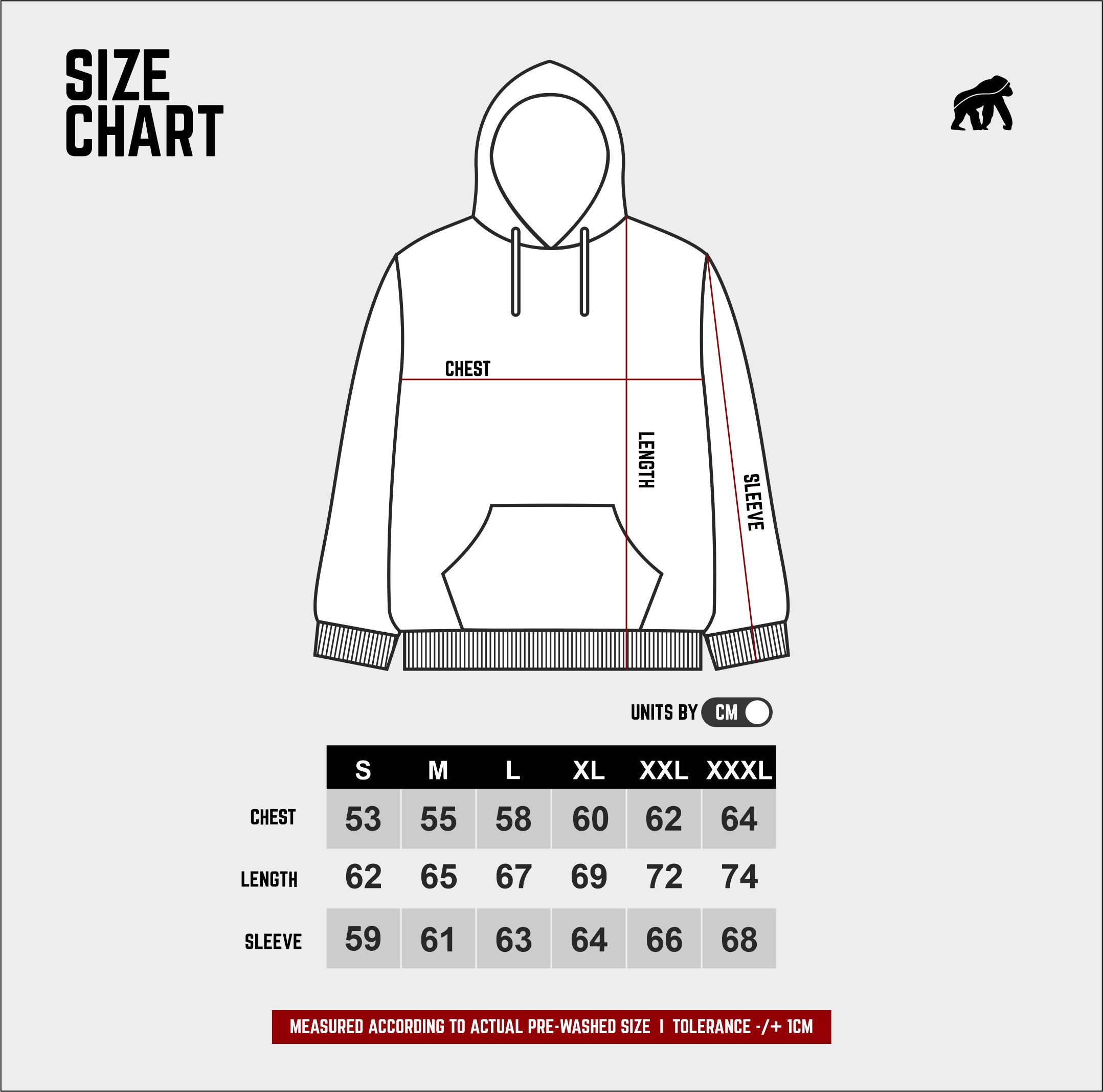 XXXL: chest : 64 – length : 74 – sleeve : 68