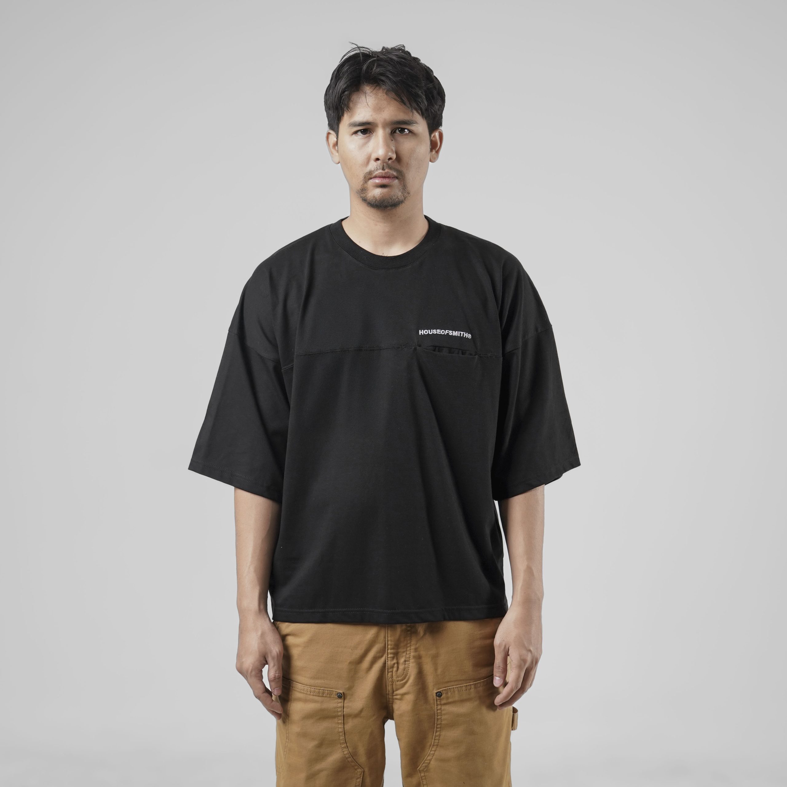 House of Smith Kaos Boxy Pria – Over Drop Tshirt Black